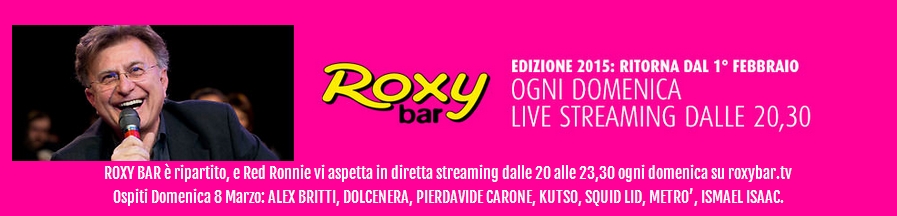 E’ con grande gioia ed antusiasmo che vi voglio comunicare l’ultima novità: sono stata invitata da Red Ronnie alla diretta della sua famosissima trasmissione “Roxy Bar” che viene trasmessa in streaming sul suo canale via Internet, al sito www.roxybar.tv ed alla quale partecipano da sempre moltissimi cantanti, sia famosi che meno noti ( per i quali il Roxy Bar è una importantissima ribalta ) e dove sopratutto la musica è la padrona di casa, oltre al carissimo Red Ronnie ovviamente 🙂